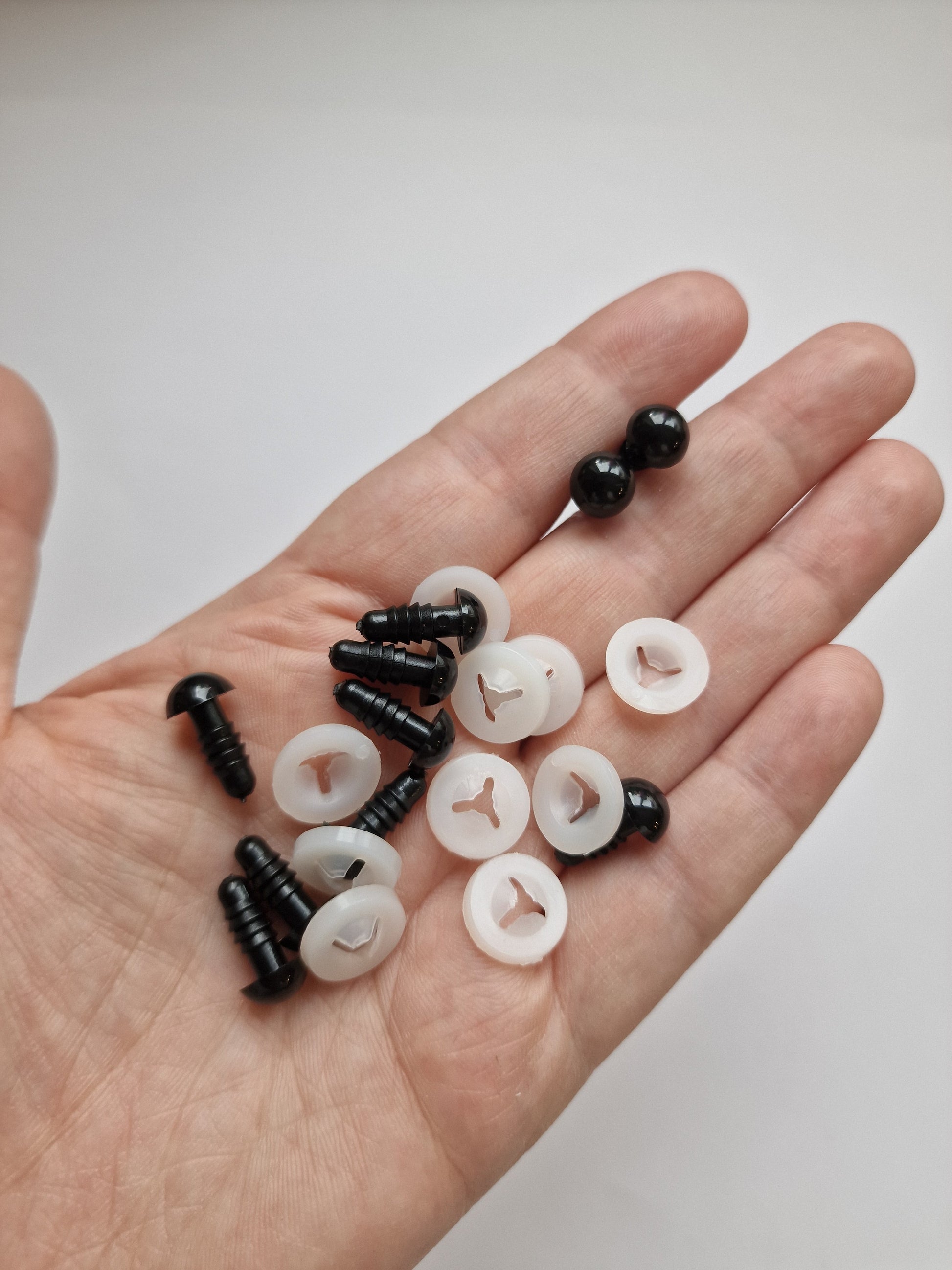 Safety eyes to use in craft projects such as Amigurumi, Sewing, Crochet, Needle Felting, Knitting, and Other Projects.