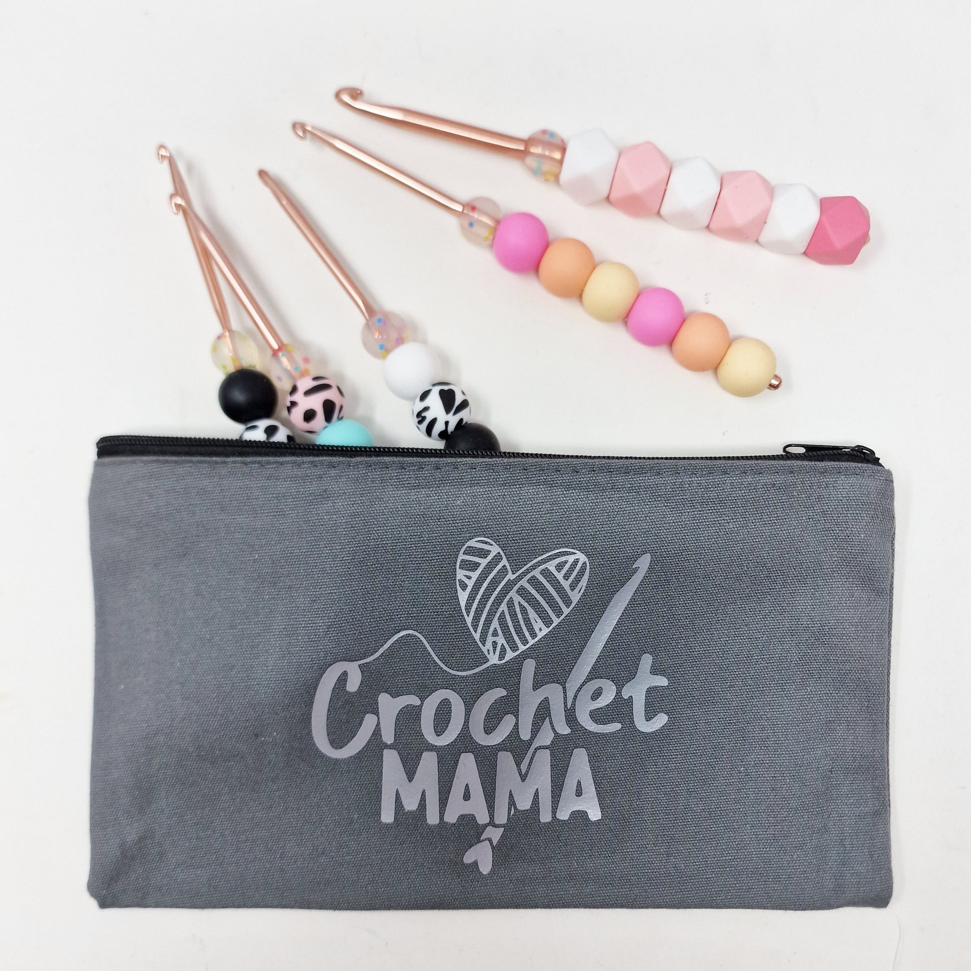 Grey/silver crochet mama zipper case