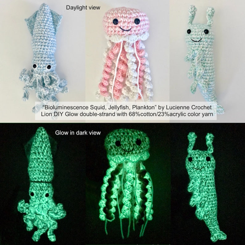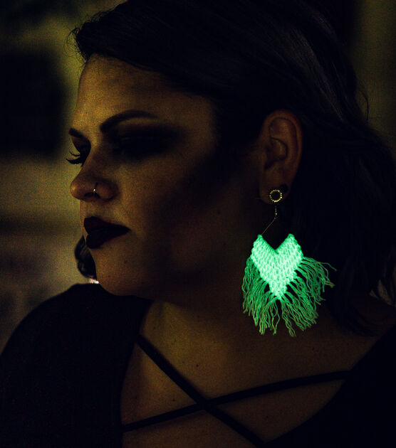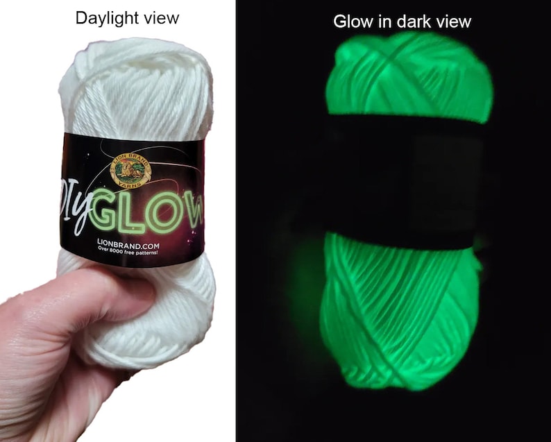 It glows! This may look like ordinary white yarn, but don't be fooled! When the lights go down, DIY Glow yarn turns up! This polyester yarn in a classic worsted weight is perfect for fiber artists of all skills and ages. Make glow-in-the-dark hats, scarves, and cowls for nighttime adventures, or add fun trims to costumes.