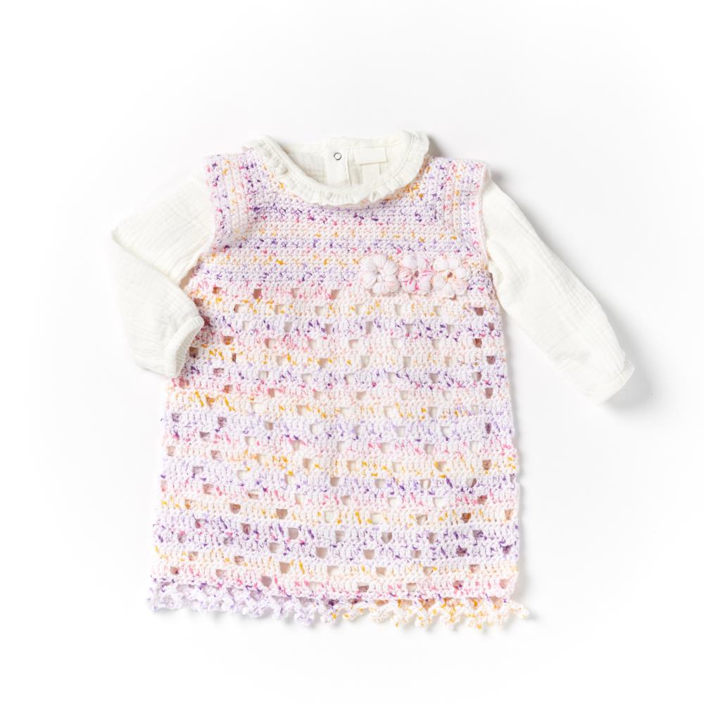 Create fun and colorful projects featuring dotted stripes. Dottie is an easy-care, DK weight yarn. Generous yardage means fewer ends to join and less interruption of the stitch pattern, This yarn is ideal for blankets and children's clothing. Craft comfortably knowing that this yarn is safe for you! It has passed the highest standard, suitable for direct contact with the most sensitive skin, even babies and small children.